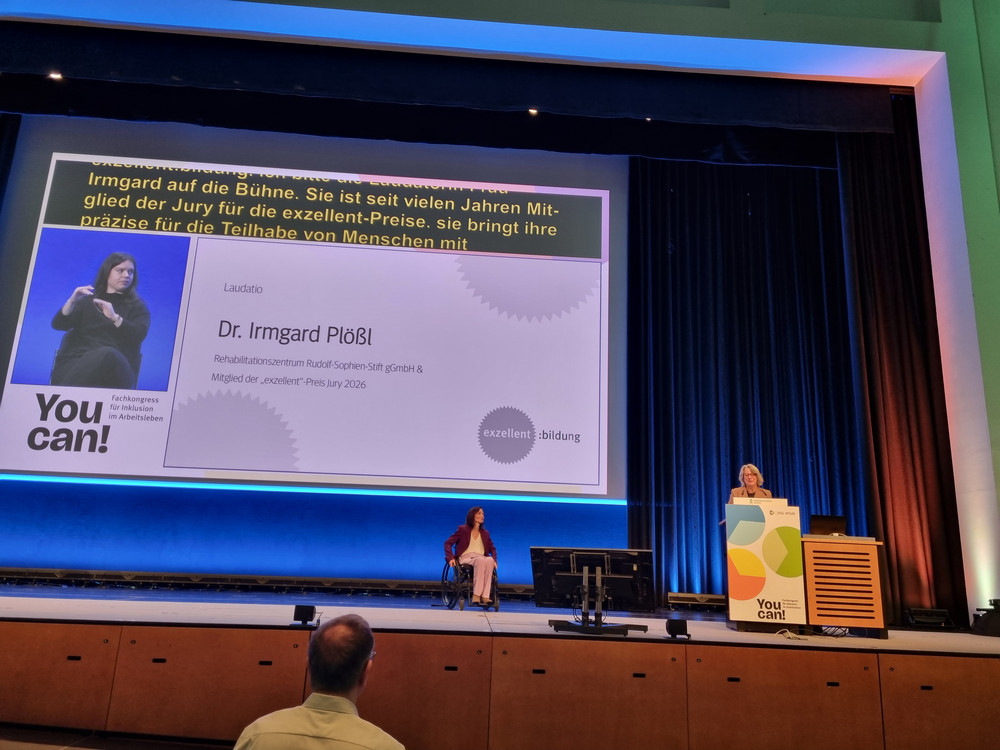 Vor über 1.000 Gäste*innen in den Leipziger Messehallen begründete die Laudatorin Dr. Irmgard Plößl die Entscheidung der Jury: „Mit dem partizipativen Ansatz des Projektes wurden Menschen mit Behinderungen von Anfang an eingebunden. So trägt das Projekt dazu bei, die Chancen Künstlicher Intelligenz für Menschen mit Behinderungen nutzbar zu machen. Zugleich schafft das Projekt eine große Nähe zum allgemeinen Arbeitsmarkt und ist auf andere Einrichtungen übertragbar. Besonders ausschlaggebend für die Auszeichnung waren die starke Personenzentrierung sowie die Förderung von Eigenverantwortung und Selbstwirksamkeit“.